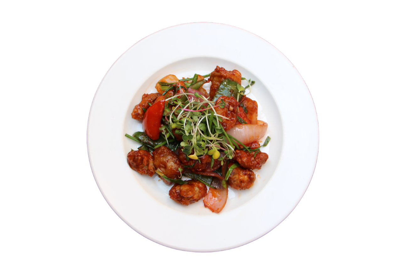 crispy fried jumbo prawns tossed with Chinese ginger sauce